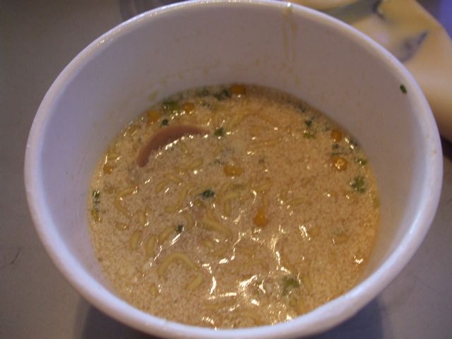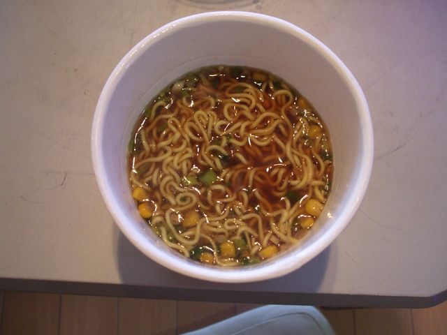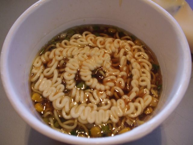 ある実験をしてみた。 醤油味のカップ麺にマヨネーズを入れると、とんこつ味になるらしい。 まず普通に醤油味のカップ麺を作りました。 続いてマヨネーズを投入。 混ぜて出来上がり。 む?確かにとんこつっぽく見える! では食べてみましょう。 ズーズズー・・・。 ・・・・・・・・・・・・・・・・・・・・・・。 マヨネーズの味しかしねぇぞ・・・・。 実験結果 見た目はとんこつ。 マヨネーズの味のインパクトが強くて、醤油味が負ける。 食えないレベルの不味さでは無いけど、2度とやらないだろう・・・。